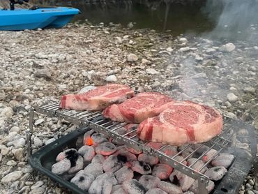 River camping is an exciting and adventurous way to experience the great outdoors. Being surrounded by the beauty of nature, the sound of the flowing water, and the fresh air can be invigorating and refreshing. It provides a unique opportunity to get away from the rigors of our very busy lives and to relax in a peaceful setting. River camping can be a great way to create lasting memories while enjoying the beauty and tranquility of nature. After an afternoon of paddling we serve up a delicious steak with baby red and Yukon potatoes. As evening sets in we set up and get ready for a night of fishing for Flathead and Channel Catfish. We start the morning off right with a hot breakfast (Breakfast potatoes/Eggs) and coffee. We can provide other suitable meals based on your dietary restriction, subject to availability. Click here for our gear and other amenities